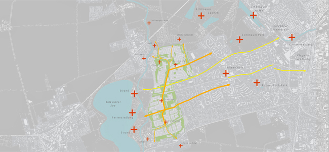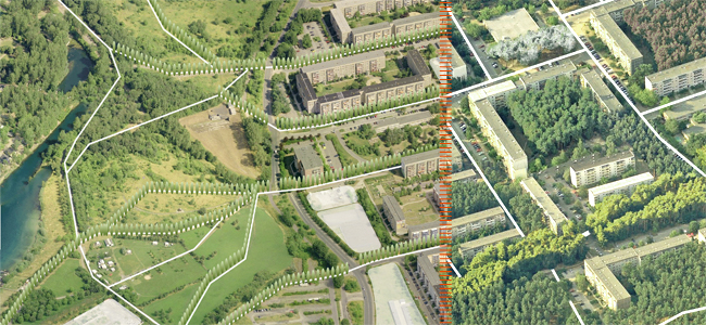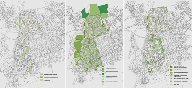 Mit dem „Freiraumkonzept für die Abrissfolgeflächen in den WK 7 und 8 in Leipzig-Grünau“ wird ein neues strategisches Leitbild für die Entwicklung des Freiraums im Stadtumbaugürtel in Leipzig-Grünau skizziert. Der Ansatz verknüpft die gebietsimmanenten Potenziale mit den Qualitäten der umgebenden Landschafts- und Siedlungsräume. Durch die Übertragung der landschaftlichen Bilder des Umlandes in den „Landschaftszug“ entstehen aus den wenig differenzierten und durch Abriss perforierten Wohnkomplexen neue Quartiere mit eigenständigem Charakter - wie die „Waldstadt“ oder das „Quartier Seeblick“. Mit „Zentral-Park“ und „Rückgrat“ soll der Stadtumbaugürtel schließlich ein starkes verbindendes Freiraumelement erhalten.